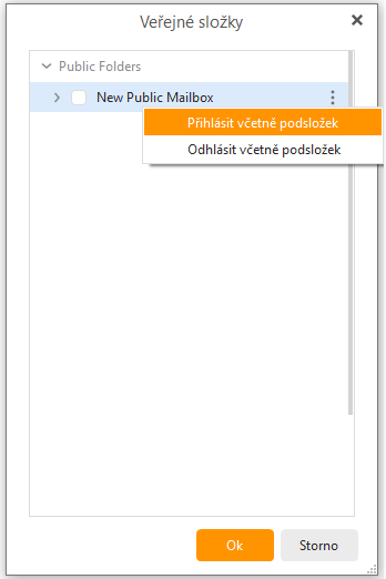 Můžete si také přihlásit nebo odhlásit odběr složky a všech jejích podsložek pravým kliknutím na ni nebo kliknutím na symbol tří teček vedle ní. To se může hodit, když má složka víc podsložek - nemusíte každou zaškrtávat jednotlivě.