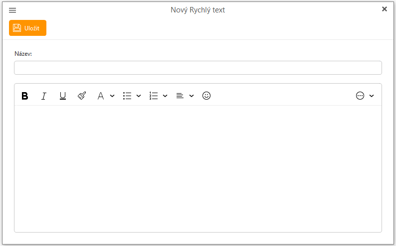 Klikněte na +Nový pro vytvoření nového Rychlého textu: