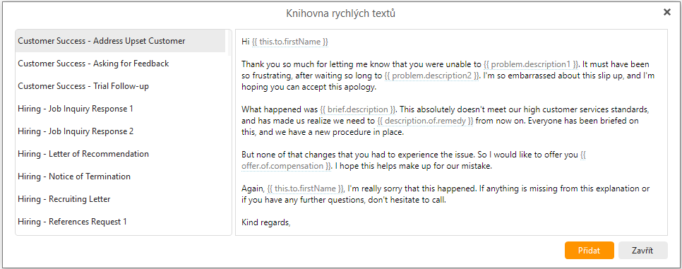Poznámka: Knihovna Rychlých textů je momentálně k dispozici pouze v angličtině pro uživatele s placenou licencí.